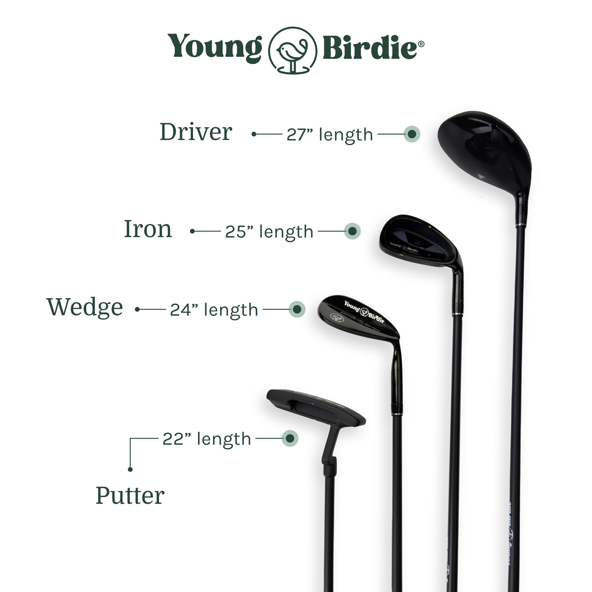 - Iron: 25” length — ideal for learning basic swing mechanics